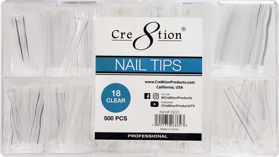 Cre8tion Nail Tips - 18 CLEAR - Longer Coffin 500pcs