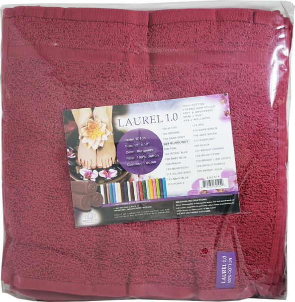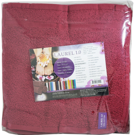 Laurel 1.0 100% Cotton Towel 12" x 12" 1 Dozen - Burgundy